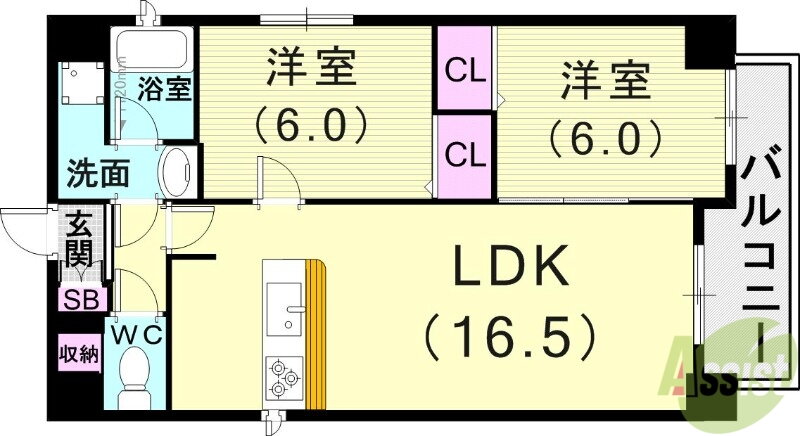 | 間取り | 2LDK(洋6 洋6 LDK16.5) | 築年月(築年数) | 2023年2月(築2年11ヶ月) |