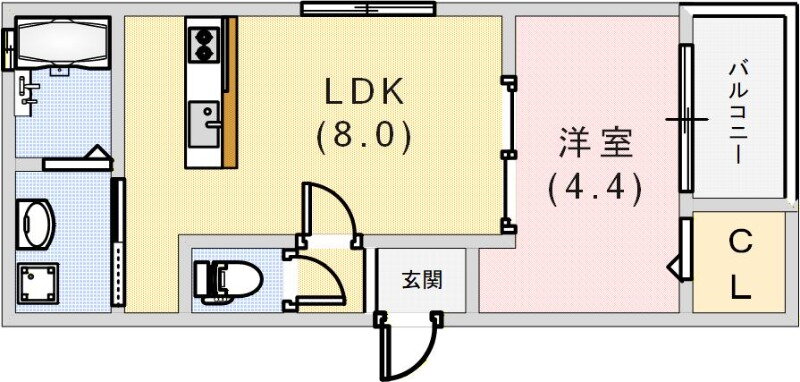 | 間取り | 1LDK(洋4.4 LDK8) | 築年月(築年数) | 2023年6月(築2年7ヶ月) |