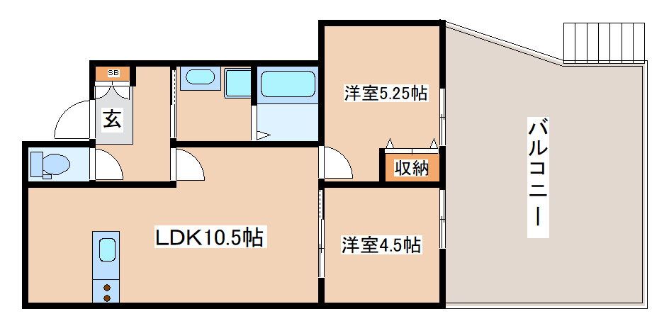 | 間取り | 2LDK(洋5.2 洋4.5 LDK10.5) | 築年月(築年数) | 2024年1月(築1年12ヶ月) |