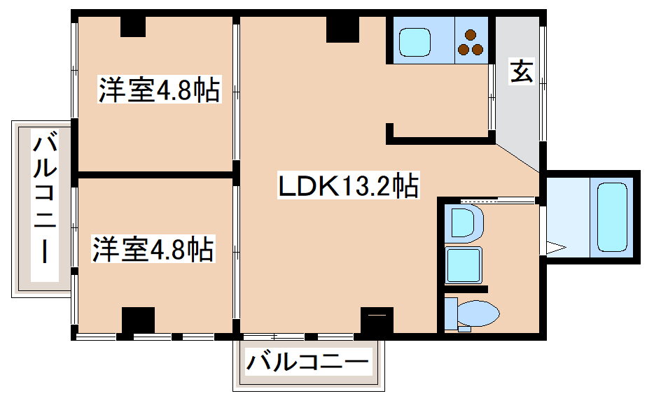 2LDK(洋4.8 洋4.8 LDK13.2) |