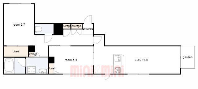 | 間取り | 2LDK(洋5.7 洋5.4 LDK11.8) | 築年月(築年数) | 2023年11月(築2年2ヶ月) |