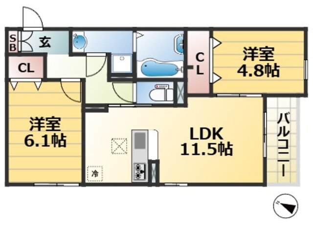 | 間取り | 2LDK(洋6.1 洋4.8 LDK11.5) | 築年月(築年数) | 2025年11月 新築 |