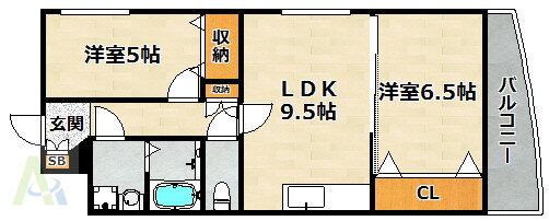 | 間取り | 2LDK(洋6 洋5 LDK9.5) | 築年月(築年数) | 1991年1月(築34年12ヶ月) |