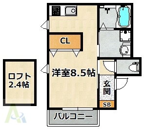 | 設備 | 冷房・暖房・エアコン・ロフト・バルコニー・バス・トイレ別・トイレ・収納スペース・洗濯機置場・洗面所・BS端子・フローリング・浴室乾燥機・ガスコンロ可・シャンプードレッサ・温水洗浄便座・システムキッチン・モニタ付インターホン・宅配BOX・駐輪場・クローゼット・CS・衣類乾燥機・都市ガス・ディンプルキー・浴トイレ別・防犯カメラ・洗面所独立・バイク置き場・コンロ2口以上・シューズボックス・インターネット無料・インターネット対応・室内洗濯機置き場 | ||||