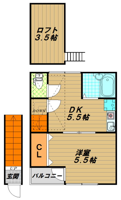 | 間取り | 1DK(洋5.5 DK5.5 ロフト 3.5) | 築年月(築年数) | 2013年7月(築12年6ヶ月) |