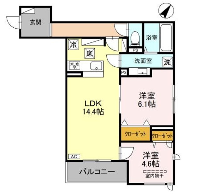 | 間取り | 2LDK(洋6.1 洋4.6 LDK14.4) | 築年月(築年数) | 2025年11月 新築 |