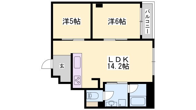 | 間取り | 2LDK(洋6 洋5 LDK14.2) | 築年月(築年数) | 1998年7月(築27年6ヶ月) |
