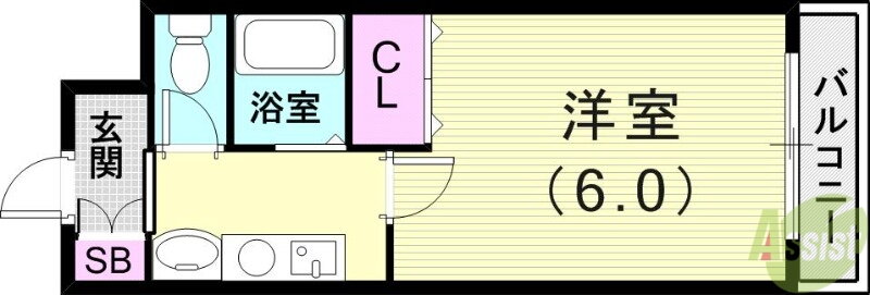| 間取り | 1K(洋6) | 築年月(築年数) | 2002年3月(築23年10ヶ月) |