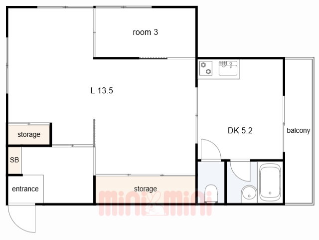 | 間取り | 1LDK(洋3 DK5.2L13.5) | 築年月(築年数) | 1971年3月(築54年10ヶ月) |