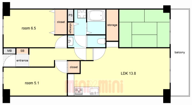 | 間取り | 3LDK(和6 洋6.5 洋5.1 LDK13.8) | 築年月(築年数) | 1984年8月(築41年5ヶ月) |