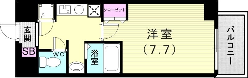 | 間取り | 1K(洋7.7) | 築年月(築年数) | 2008年2月(築17年11ヶ月) |
