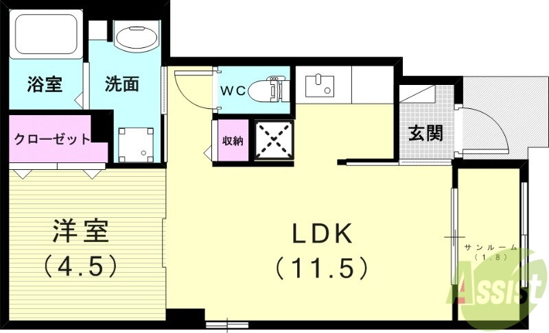 | 間取り | 1LDK(洋4.5 LDK11.5) | 築年月(築年数) | 2025年6月 新築 |