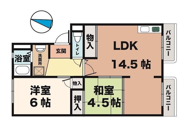 | 間取り | 2LDK(和4.5 洋6.0 LDK14.5) | 築年月(築年数) | 1982年6月(築43年7ヶ月) |