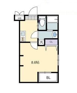 | 間取り | 1K(洋8.60) | 築年月(築年数) | 2021年3月(築4年10ヶ月) |