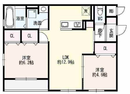 | 間取り | 2LDK(洋6.2 洋4.6 LDK12.9) | 築年月(築年数) | 2018年9月(築7年4ヶ月) |