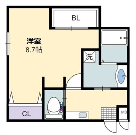 | 間取り | 1K(洋8.7) | 築年月(築年数) | 2021年3月(築4年10ヶ月) |