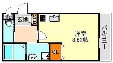 | 間取り | ワンルーム(洋8.8) | 築年月(築年数) | 2019年12月(築6年1ヶ月) |