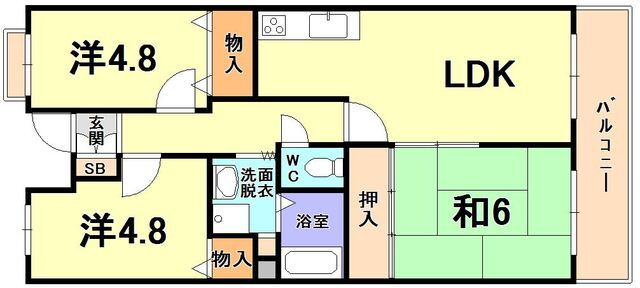 | 間取り | 3LDK(和6 洋4.8 洋4.8 LDK9.8) | 築年月(築年数) | 1997年8月(築28年5ヶ月) |