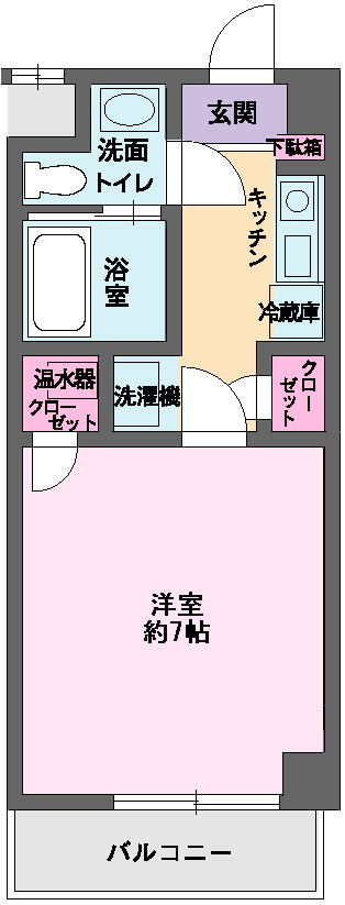 | 間取り | 1K(洋7) | 築年月(築年数) | 1996年3月(築29年10ヶ月) |