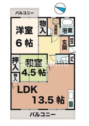 | 間取り | 2LDK(和4.5 洋6.0 LDK13.5) | 築年月(築年数) | 1981年3月(築44年10ヶ月) |