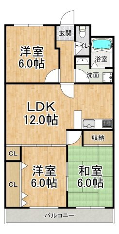 3LDK(洋6.0 洋6.0 洋6.0 LDK12.0) |