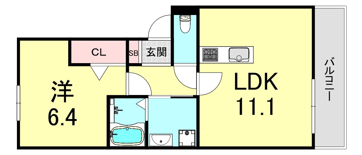 1LDK(洋6.3 LDK11.1) |