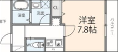 | 間取り | 1K(洋7.8) | 築年月(築年数) | 2022年2月(築3年10ヶ月) |
