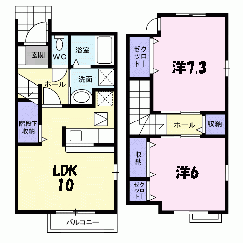 | 間取り | 2LDK(洋7.3 洋6 LDK10) | 築年月(築年数) | 2014年6月(築11年7ヶ月) |