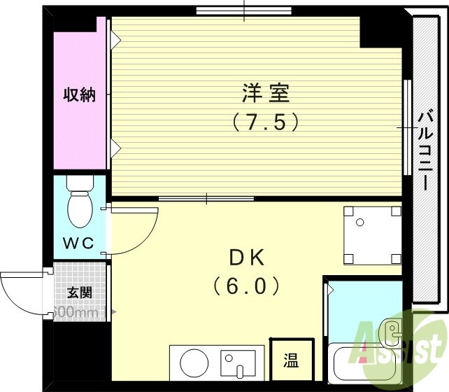 | 間取り | 1DK(洋6 DK5) | 築年月(築年数) | 1991年5月(築34年8ヶ月) |