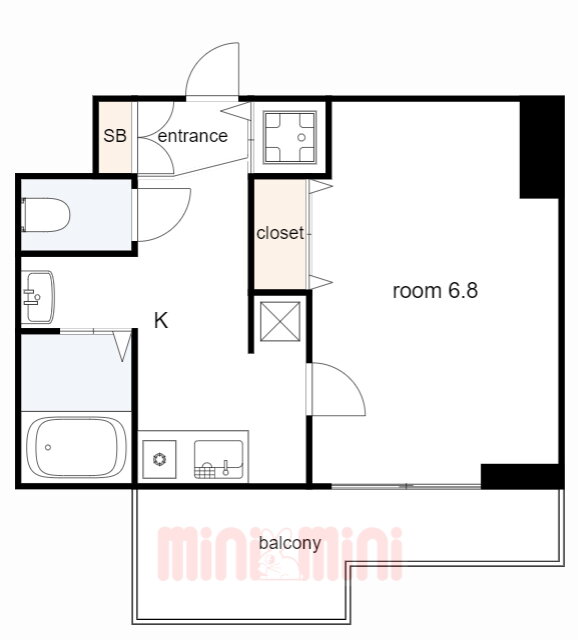 | 間取り | 1K(洋6.8 K3.5) | 築年月(築年数) | 2007年8月(築18年5ヶ月) |
