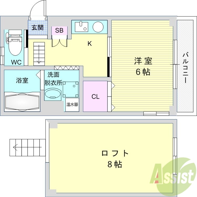 | 設備 | 冷房・暖房・エアコン・ロフト・オートロック・バルコニー・バス・トイレ別・トイレ・収納スペース・洗濯機置場・洗面所・CATV・フローリング・シャンプードレッサ・温水洗浄便座・システムキッチン・クローゼット・IHクッキングヒータ・浴トイレ別・洗面所独立・シューズボックス・インターネット対応・室内洗濯機置き場 | ||||
