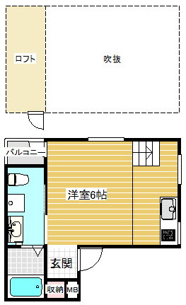 | 間取り | 1K(洋6 ロフト 6) | 築年月(築年数) | 2012年6月(築13年7ヶ月) |