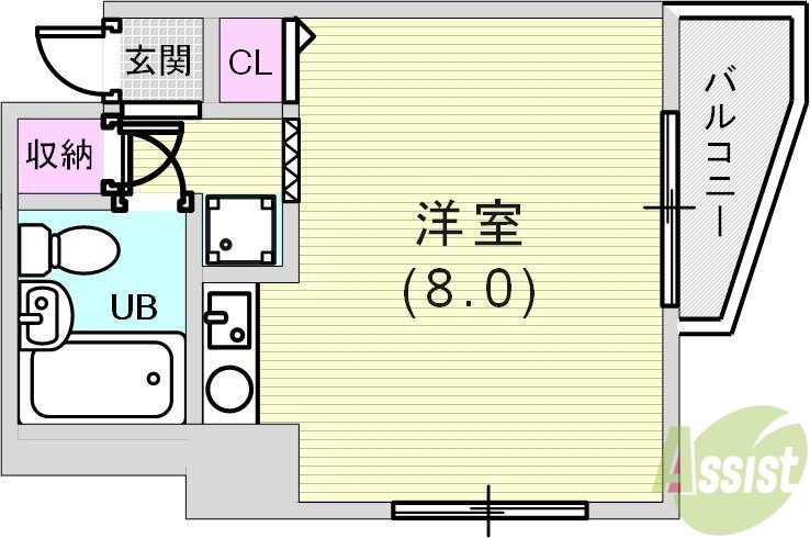 | 間取り | 1K(洋8.5 K2.5) | 築年月(築年数) | 1986年9月(築39年4ヶ月) |