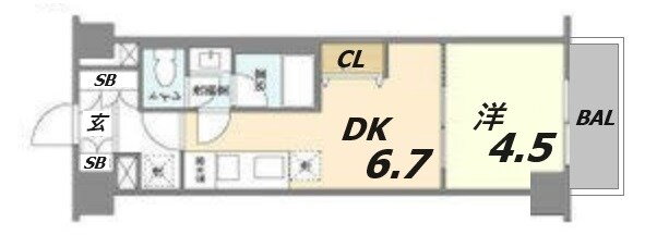| 間取り | 1DK(洋4.5 DK6.7) | 築年月(築年数) | 2003年1月(築22年12ヶ月) |