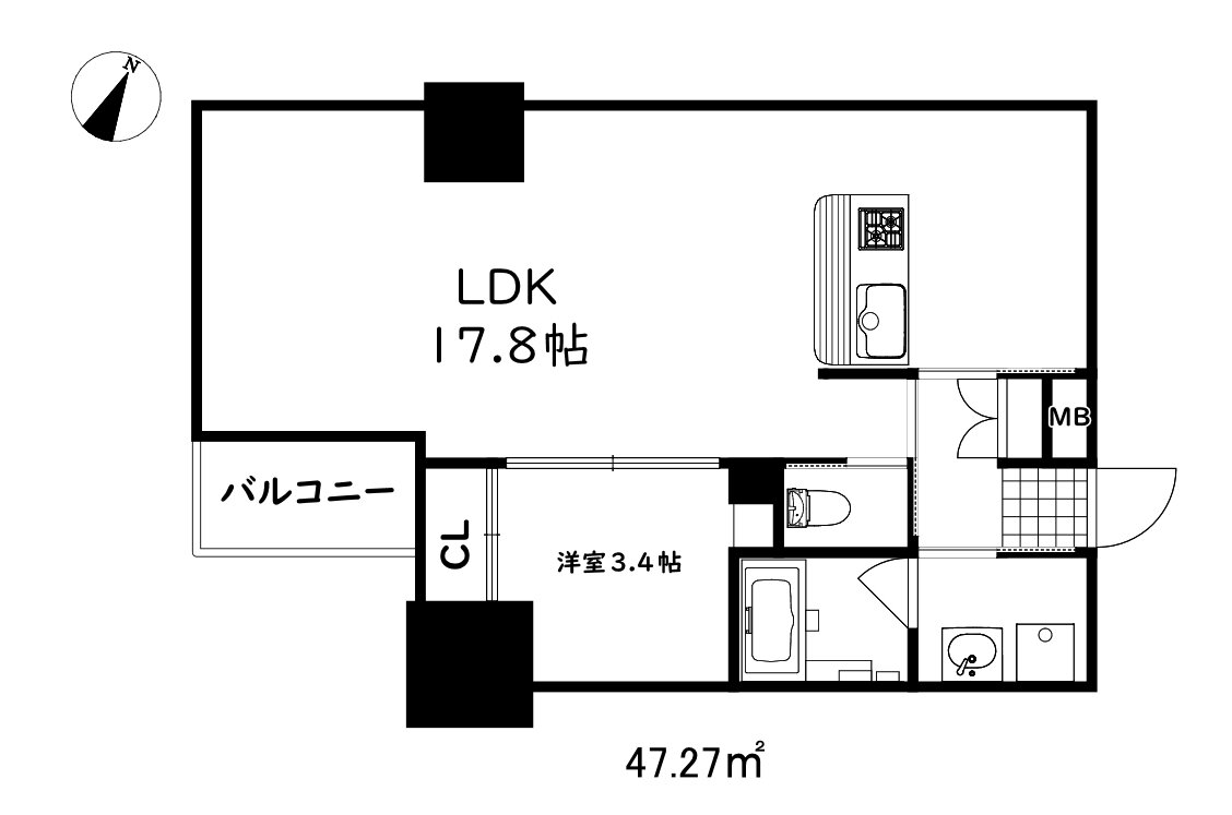 | 専有面積 | 47.27㎡ | 所在階/階数 | 8階/10階建 |