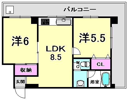 | 間取り | 2LDK(洋6.0 洋5.0 LDK8.5) | 築年月(築年数) | 1991年3月(築34年10ヶ月) |