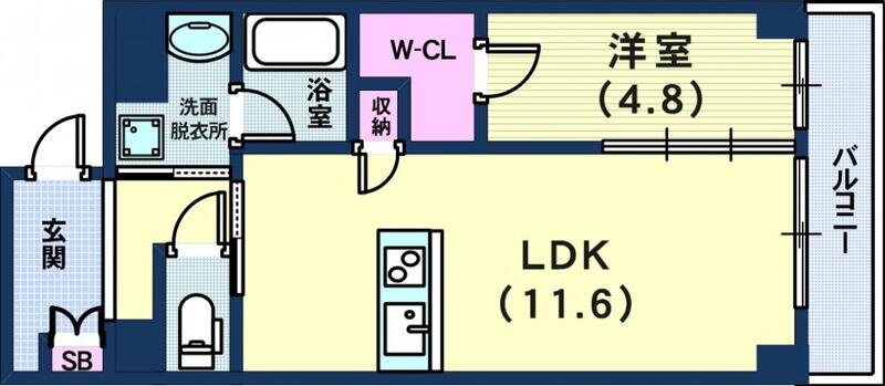 | 間取り | 1LDK(洋4.8 LDK11.6) | 築年月(築年数) | 2017年4月(築8年9ヶ月) |