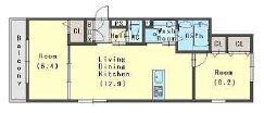 | 間取り | 2LDK(洋6.4 洋6.2 LDK12.9) | 築年月(築年数) | 2020年3月(築5年10ヶ月) |