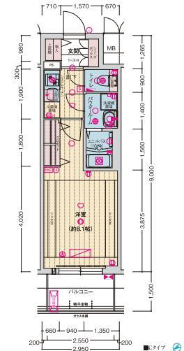 | 間取り | 1K(洋8.1) | 築年月(築年数) | 2026年2月 新築 |