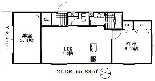 | 専有面積 | 55.83㎡ | 所在階/階数 | 2階/3階建 |