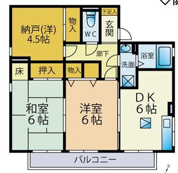 | 間取り | 3DK(和6 洋6 洋4.5 DK6) | 築年月(築年数) | 1996年2月(築29年11ヶ月) |