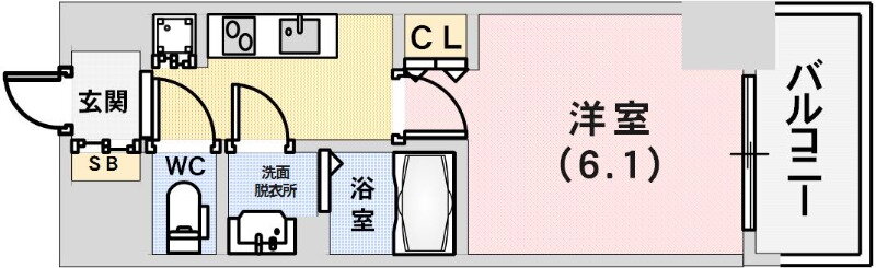 | 間取り | 1K(洋6.1 K2.5) | 築年月(築年数) | 2017年1月(築8年11ヶ月) |