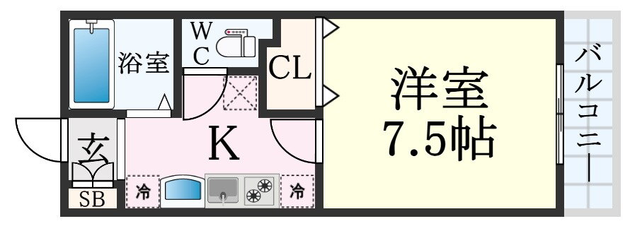 | 間取り | 1K(洋7.5 K2.0) | 築年月(築年数) | 2004年3月(築21年10ヶ月) |