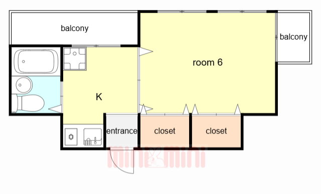 | 間取り | 1K(洋6) | 築年月(築年数) | 1990年9月(築35年4ヶ月) |