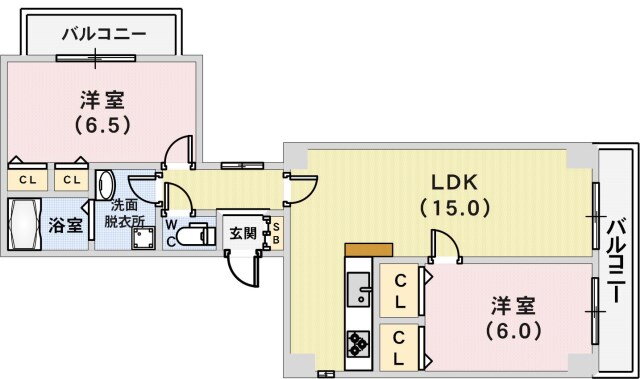 | 間取り | 2LDK(洋6.5 洋6 LDK15) | 築年月(築年数) | 1988年3月(築37年10ヶ月) |