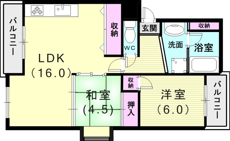 | 間取り | 2LDK(和4.5 洋6 LDK16) | 築年月(築年数) | 1987年5月(築38年8ヶ月) |