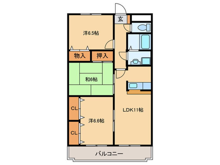 | 間取り | 3LDK(和6 洋6.6 洋6.5 LDK11) | 築年月(築年数) | 2001年1月(築24年12ヶ月) |