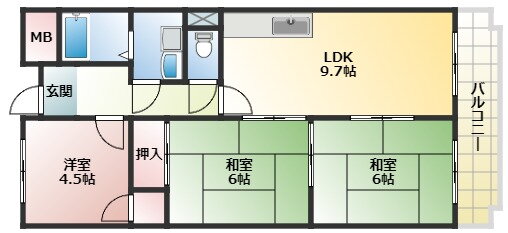 | 間取り | 3LDK(和6.0 和6.0 洋4.5 LDK9.7) | 築年月(築年数) | 1987年6月(築38年7ヶ月) |