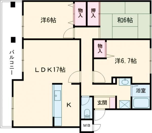 | 間取り | 3LDK(和6.00 洋6.70 洋6.00 LDK17.00) | 築年月(築年数) | 1993年7月(築32年6ヶ月) |