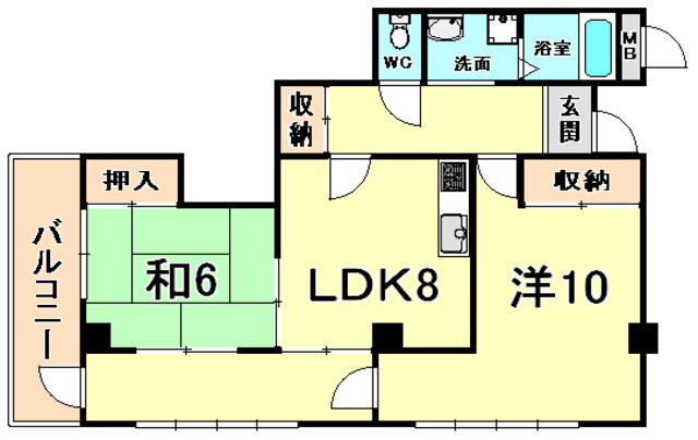 | 間取り | 2LDK(和6 洋8 LDK8) | 築年月(築年数) | 1987年7月(築38年6ヶ月) |